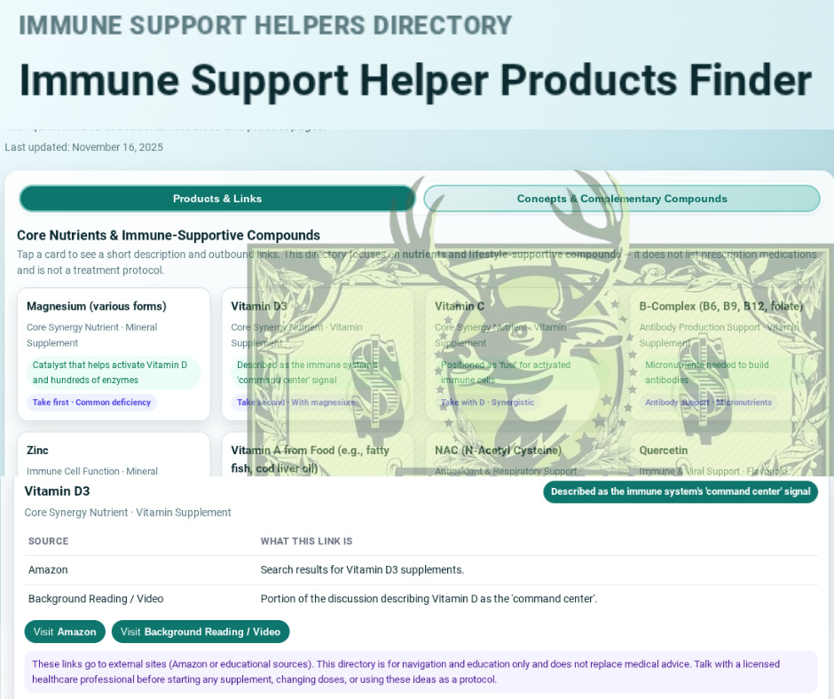 The image below is a preview of the immune support blueprint and product finder. It explains what each compound does and gives you pre-selected product options for every one — so you don’t have to search unless you want to. It’s a strong, ready-to-use starting point for seasonal immune support.